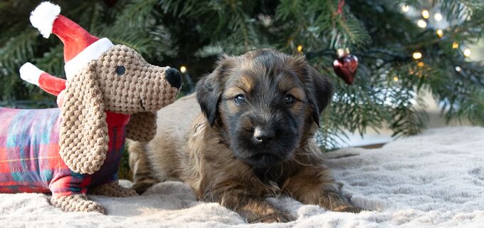 Eigentlich wollten wir unsere Zwergen-Hummel-Weihnachtsfotos draußen im Garten machen. Leider war es heute bei uns aber ziemlich kalt und windig, daher haben wir dann doch den kuscheligen Wintergarten vorgezogen und finden die Fotos von unseren 9 Weihnachts-Hummelchen sehr gelungen. So langsam werden sie ganz schön lustig und laut. Sie können sich in den hellsten Tönen beschweren, wenn Mama Lüttchen vor dem Welpenzimmer steht und nach dem Rechten schaut, aber nicht zum Säugen bereit ist. Tja, wir üben uns schon einmal im Frust aushalten, also Lüttchen ist von diesem Geschrei ziemlich unbeeindruckt. Es wird wirklich Zeit, dass die Rasselbande ins Freie kann. Wir hoffen nun auf moderate Temperaturen in den nächsten Tagen, damit die Zwerge endlich ihren Welpengarten einweihen können. Die Zeit rennt, alle neuen Familien haben uns den S-Namen für ihr neues Familienmitglied genannt, so können wir alles an das Zuchtbuchamt weitergegebn. Die Termine für das eU-Schallen, Impfen und die Wurfabnahme stehen auch schon fest ... aber das schieben wir jetzt einfach noch etwas beiseite und GENIEßEN unsere 9 Hummelchen in vollen Zügen. Ja ... und dann ... muss ich mich ja auch noch entscheiden, wer von den 5 Mädels unser Rudel in Zukunft verstärken soll ... das ist gar nicht so einfach, ich finde sie nämlich alle toll!